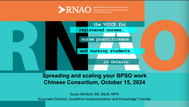 在会上Doris Grinspun教授从指南出发,阐明了RNAO-BPSO在制定、传播和实施指南过程中的严谨性和科学性。在回顾与各个国家/地区的合作中,展示了RNAO-BPSO的历年发展并表达了对所有参与、促进者的感谢及对新加入者的欢迎。从如何与中国建立合作,到阐明RNAO-BPSO一直致力于促进全球合作,强调了护理对于人类健康的重要性,表达了对中国地区BPSO各个中心工作的高度赞赏。